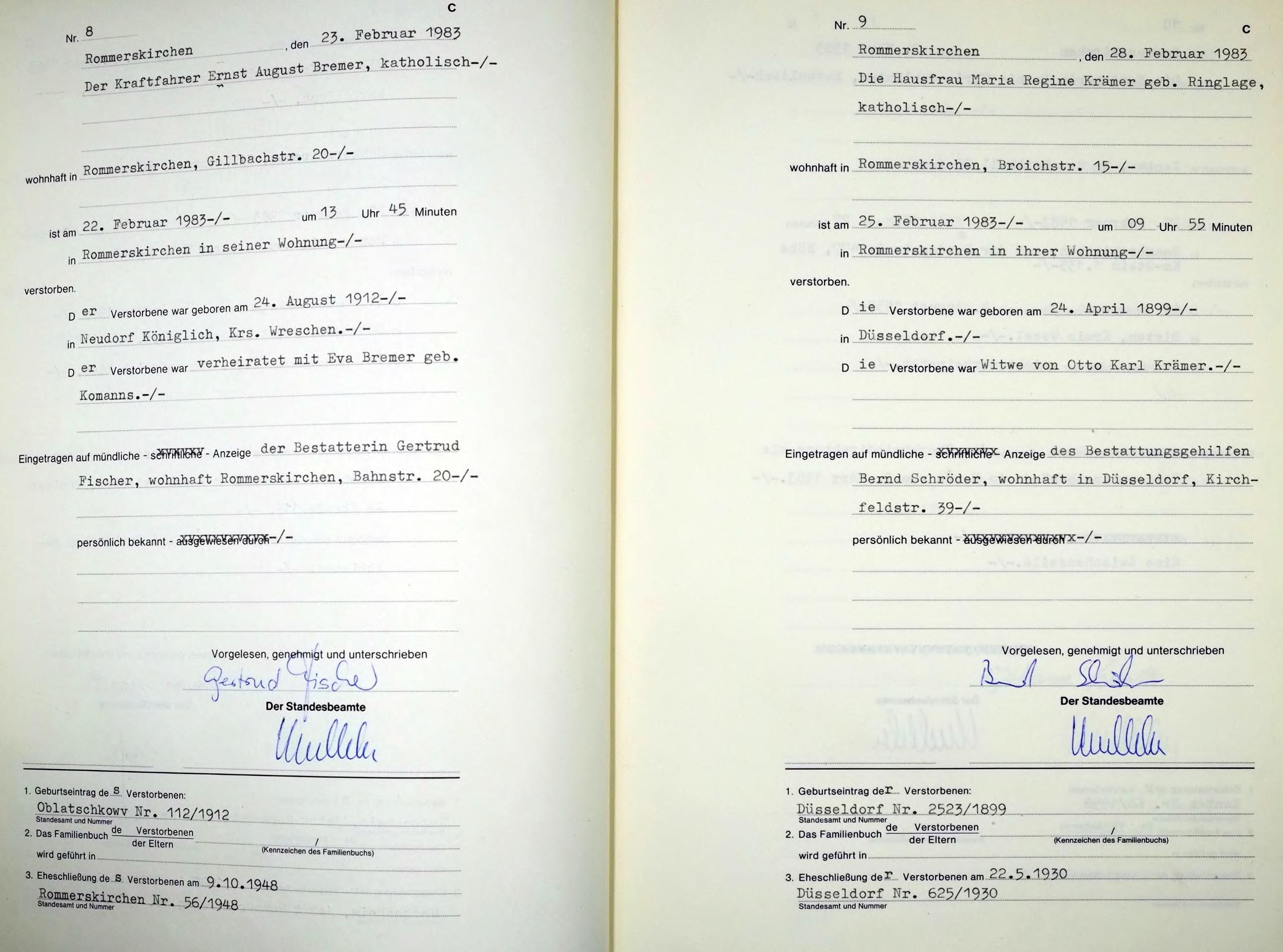 "Standesamtregister aus dem Gemeindearchiv Rommerskirchen"