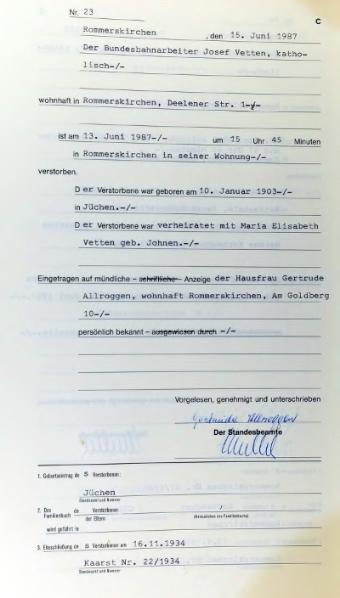 "Standesamtregister aus dem Gemeindearchiv Rommerskirchen"