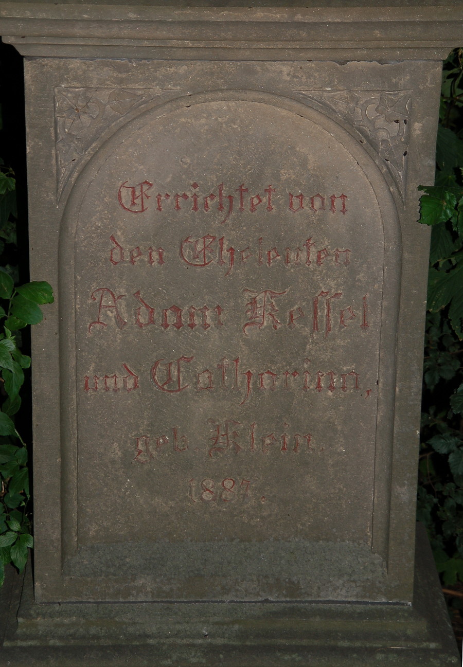 Inschrift des Wegekreuzes der Eheleute Kessel an der B59 Rommerskirchen und Rommerskirchen-Sinsteden