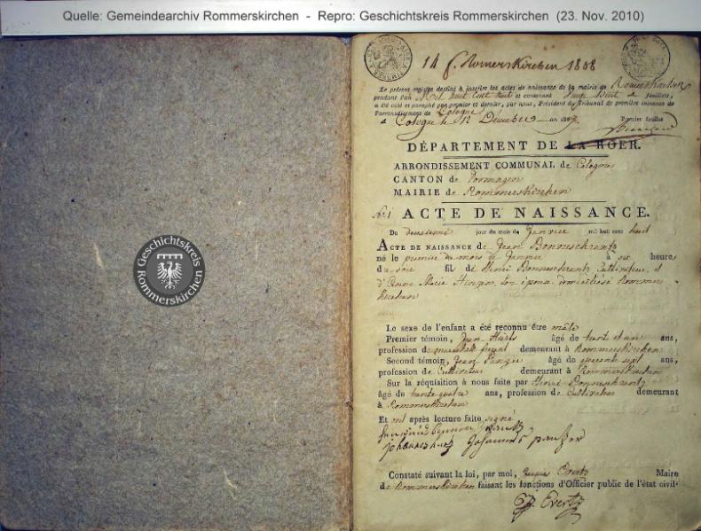 aktuell11:12, 25. Nov. 2010Vorschaubild der Version vom 11:12, 25. Nov. 20101.210 × 1.722, 25 Seiten (10,17 MB)KlausErdmann (Diskussion • Beiträge){{Information |Beschreibung = ;Mairie Rommerskirchen:Geburtsurkunden von 1808 |Quelle = Gemeindearchiv Rommerskirchen |Urheber = |Datum = 1808 |Scans = Klaus Erdmann ''(Repro: 23.11.2010)'' |G