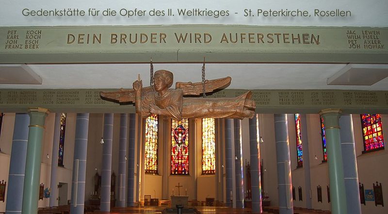 - Beschreibung: Gedenkstätte mit Namen für der Opfer des II. Weltkrieges in der kath. Pfarrkirche St. Peter in Neuss-Rosellen.