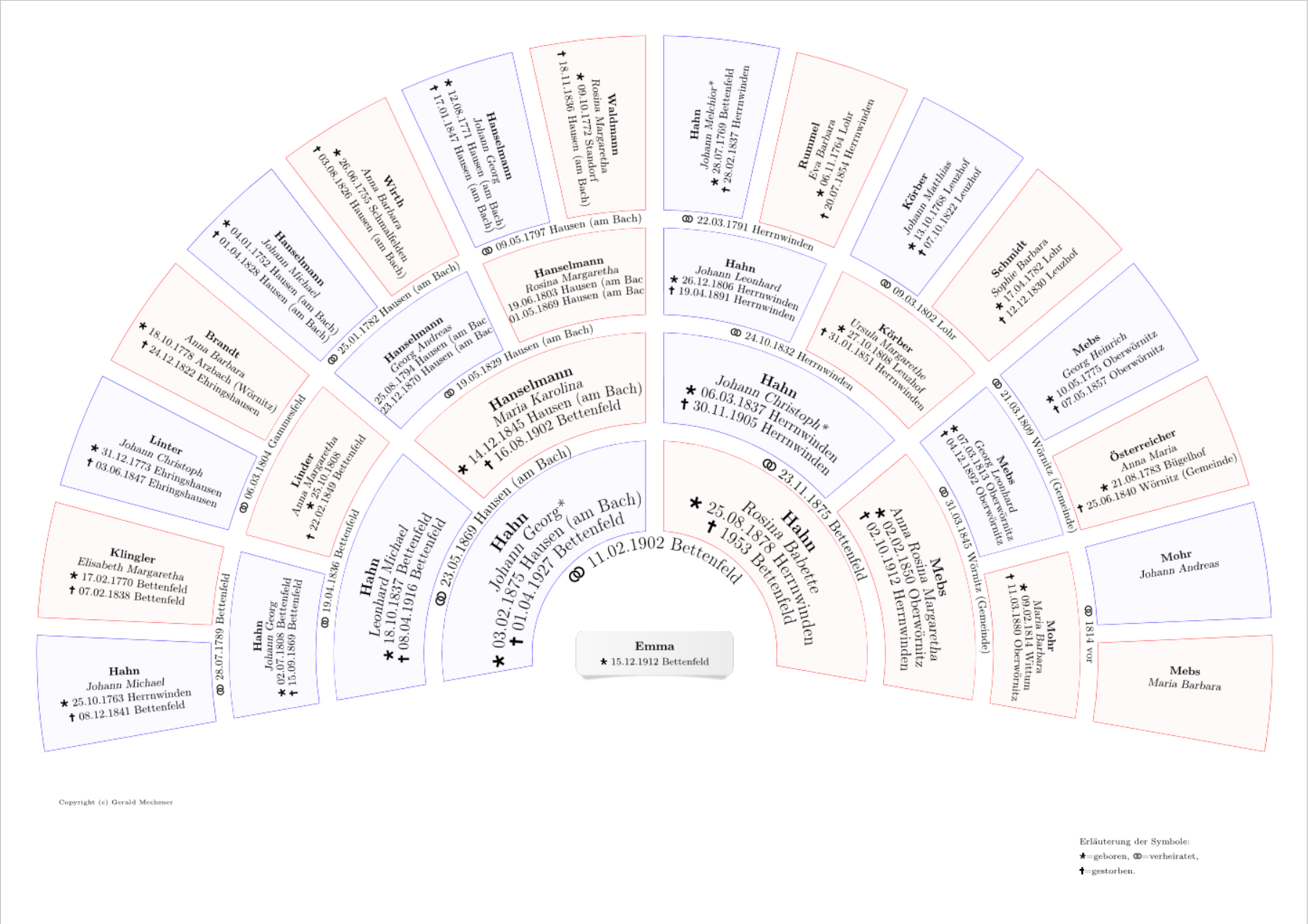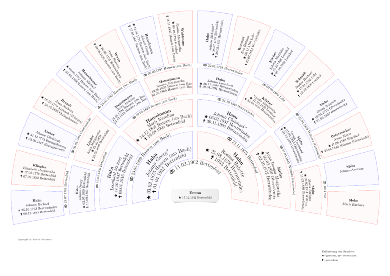 | aktuell | 15:04, 3. Jul. 2021 | 1.807 × 1.277 (767 KB) | GMechsner (Diskussion • Beiträge) | {{Information |Beschreibung = GES-2020:Runde Ahnentafel |Quelle = CMC-Mechsner |Urheber = Gerald Mechsner |Datum = |Scans = |Genehmigung = {{Copyright GenWiki|GMechsner}} |Andere_Versionen = |Anmerkungen = }} [[Category:Images {{subst:REVISIONU |