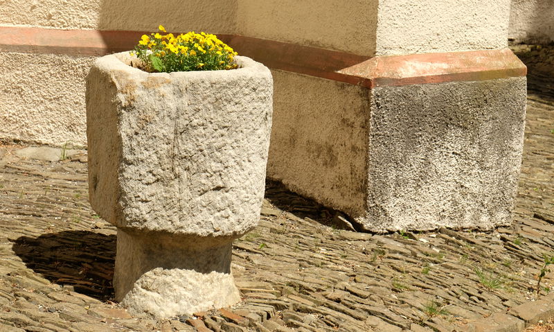 histor. Taufstein vor der kath. Kirche St. Luzia in Eschfeld | ||||