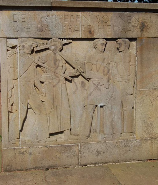 - Beschreibung: Rechtes Relief des Kriegerdenkmals für die Gefallenen der beiden Weltkriege in Sassenberg.