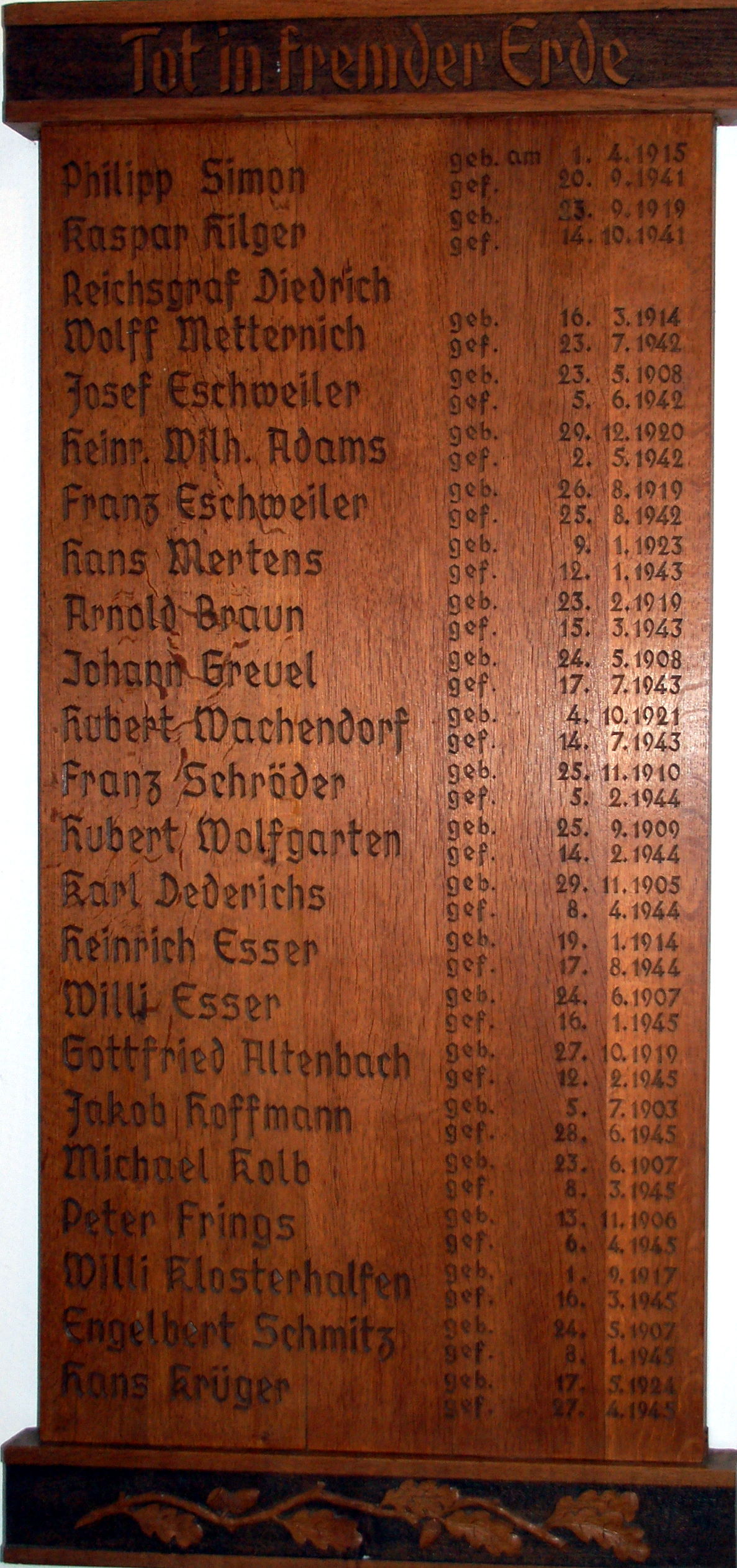 Gedenktafel für die Kriegsopfer im Eingangsbereich der kath. Pfarrkirche St. Pantaleon, Satzvey | |||