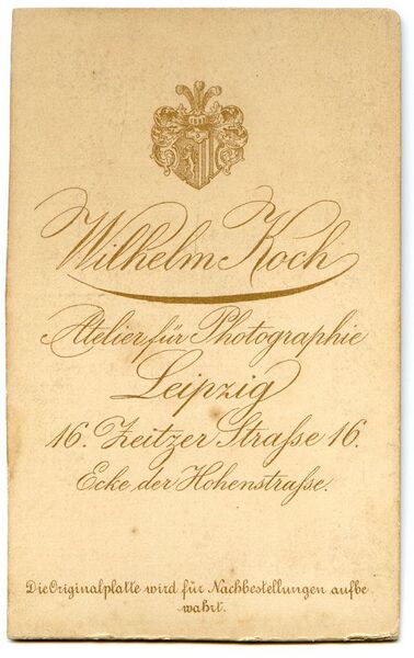 | aktuell | 22:23, 28. Aug. 2022 | 587 × 931 (97 KB) | Kai Heinrich (Diskussion • Beiträge) | {{Information |Beschreibung = Fotostudio, weitere Details siehe unter "Dateiverwendungen" |Quelle = eigene Sammlung |Urheber = |Datum = |Scans = ''(Repro)'' {{User:KaiHeinrich|KaiHeinrich}} |Genehmigung = gemeinfrei |Andere_Versionen = |Anmerkungen = }} {{Projekt Fotostudios|}} |