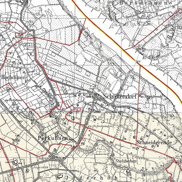 Ausschnitt aus dem Meßtischblatt 0793 Skirwiet, 0794 Ruß, 0893 Kallningken und 0894 Stucken (1:25 000)