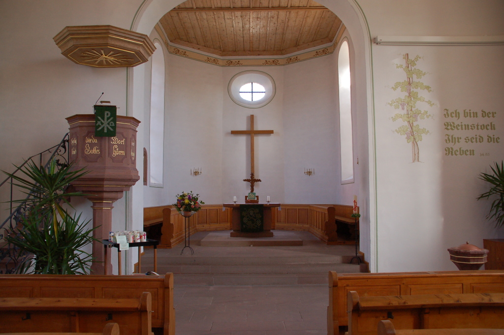 Ansicht zum Altarraum der protest. Kirche in Schweigen-Rechtenbach
