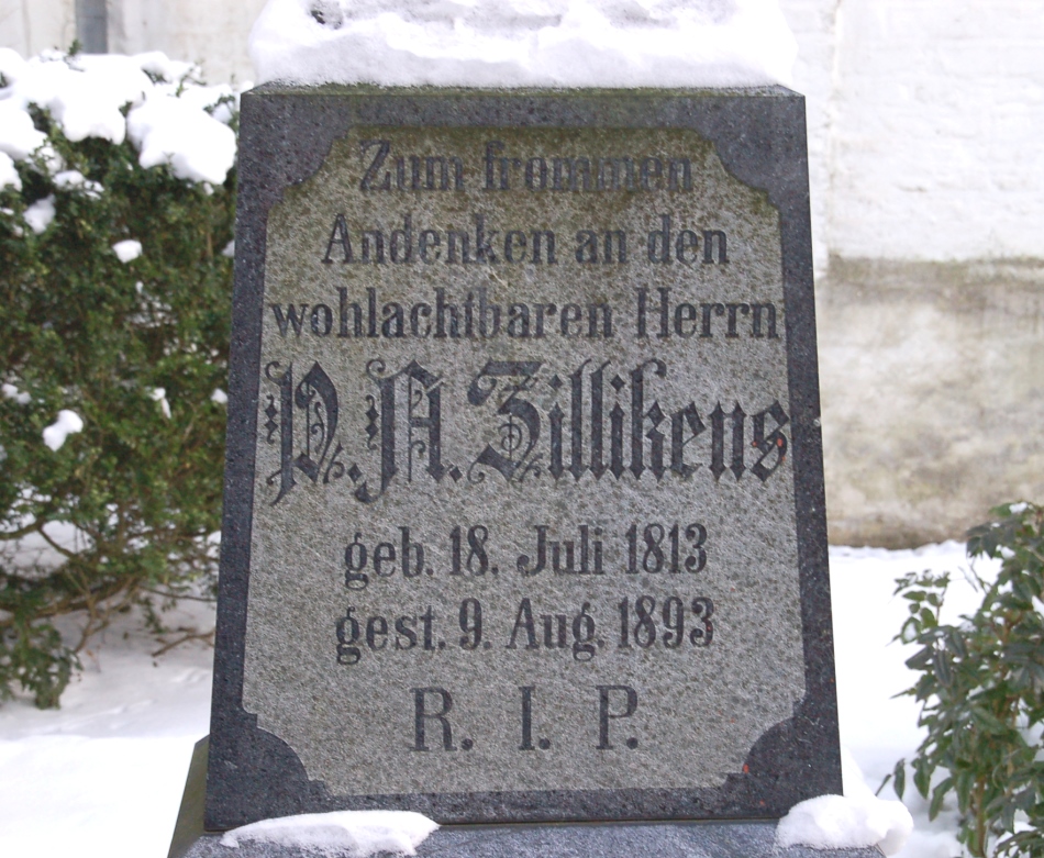 Grabstein des Peter Arnold Zillikens (1818-1893) auf dem Kirchfriedhof in Spiel | ||||