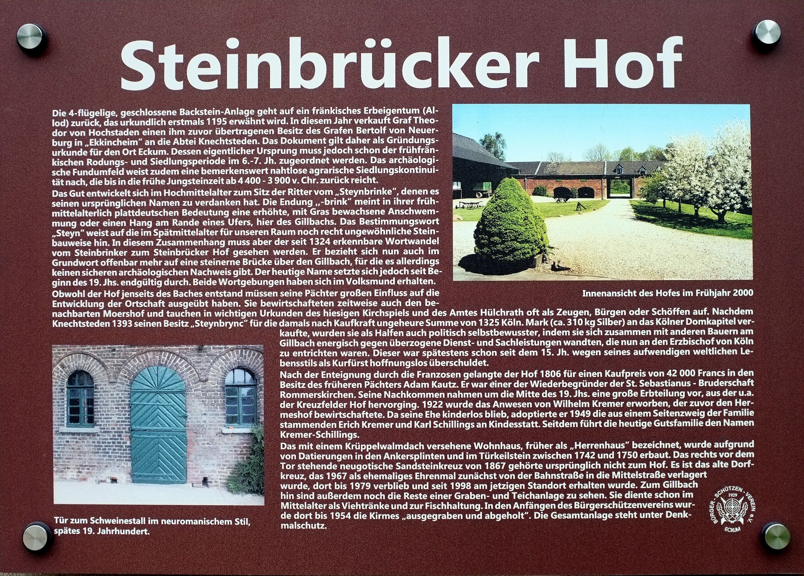 | aktuell | 12:37, 6. Mai 2014 | 3.453 × 2.476 (4,06 MB) | KlausErdmann (Diskussion • Beiträge) | {{Information |Beschreibung = ;Informationstafel am Steinbrücker Hof in Rommerskirchen-Eckum {{Geo|}} |Quelle = selbst fotografiert |Urheber = Kateer |Datum = 6. Mai 2014 |Scans = |Genehmigung = {{self|Cc-by- |