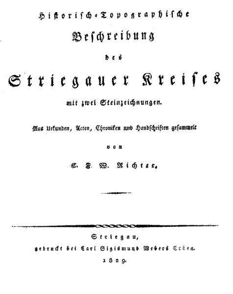 - Beschreibung: Richter: Chronik Striegau, 1829, Titel