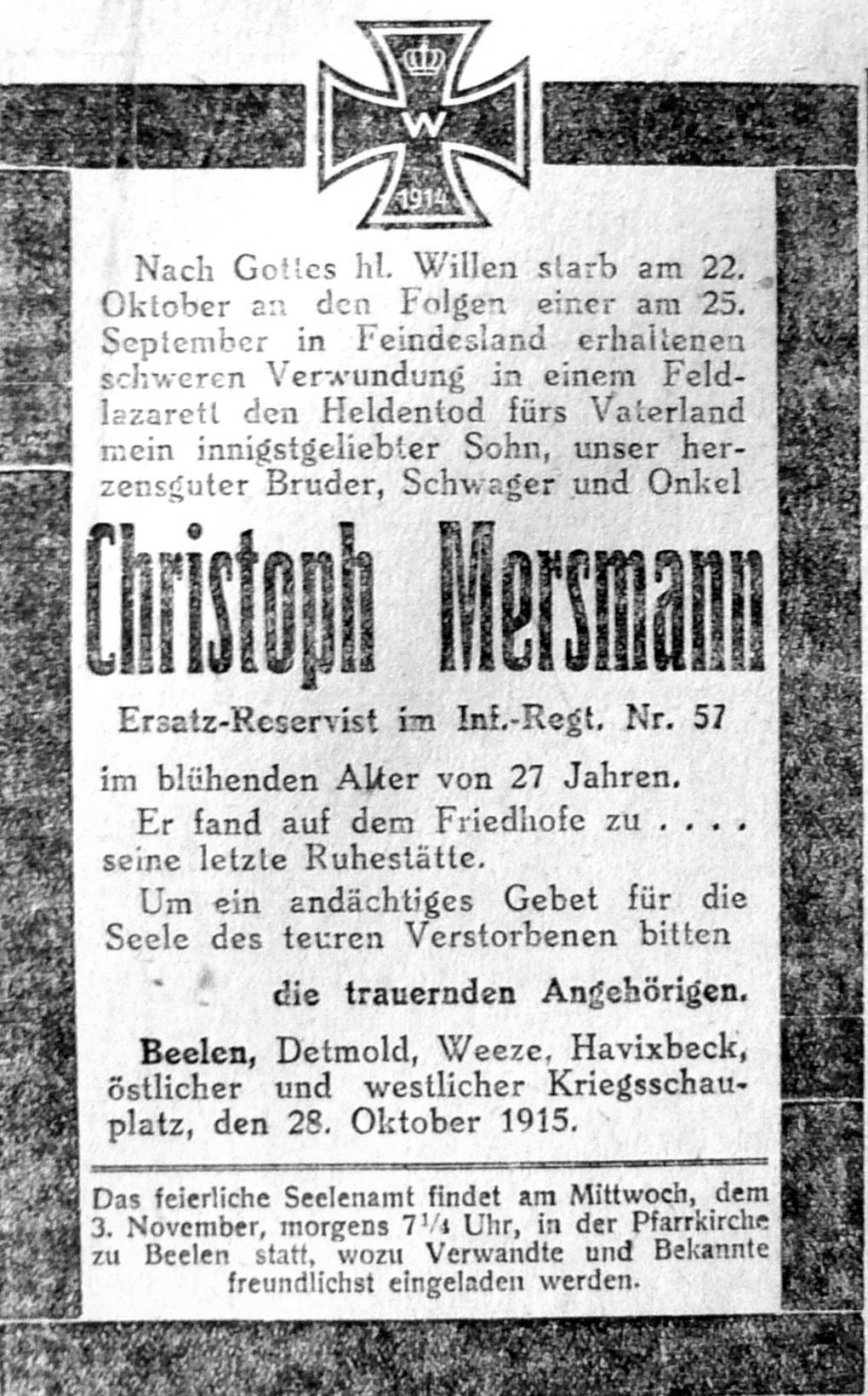 in der Beckumer Volks-Zeitung vom 28. Oktober 1915