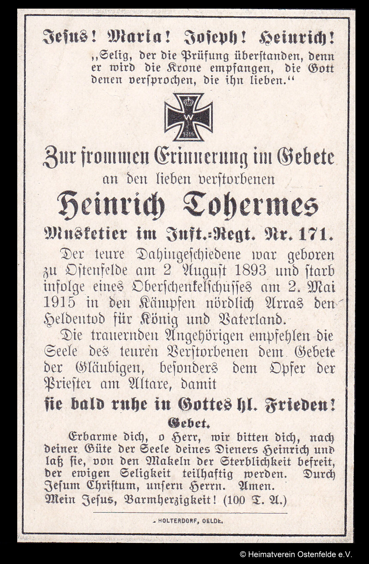 Totenzettel von Heinrich Tohermes aus Ostenfelde