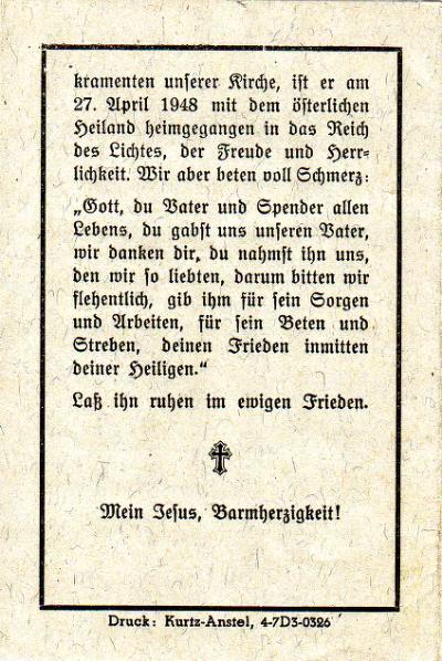 Totenzettel von Theodor Broich, von Haus Kamp in Ramrath | |||