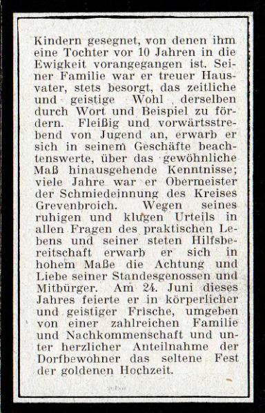 Totenzettel von Mathias Haas aus Evinghoven | |||