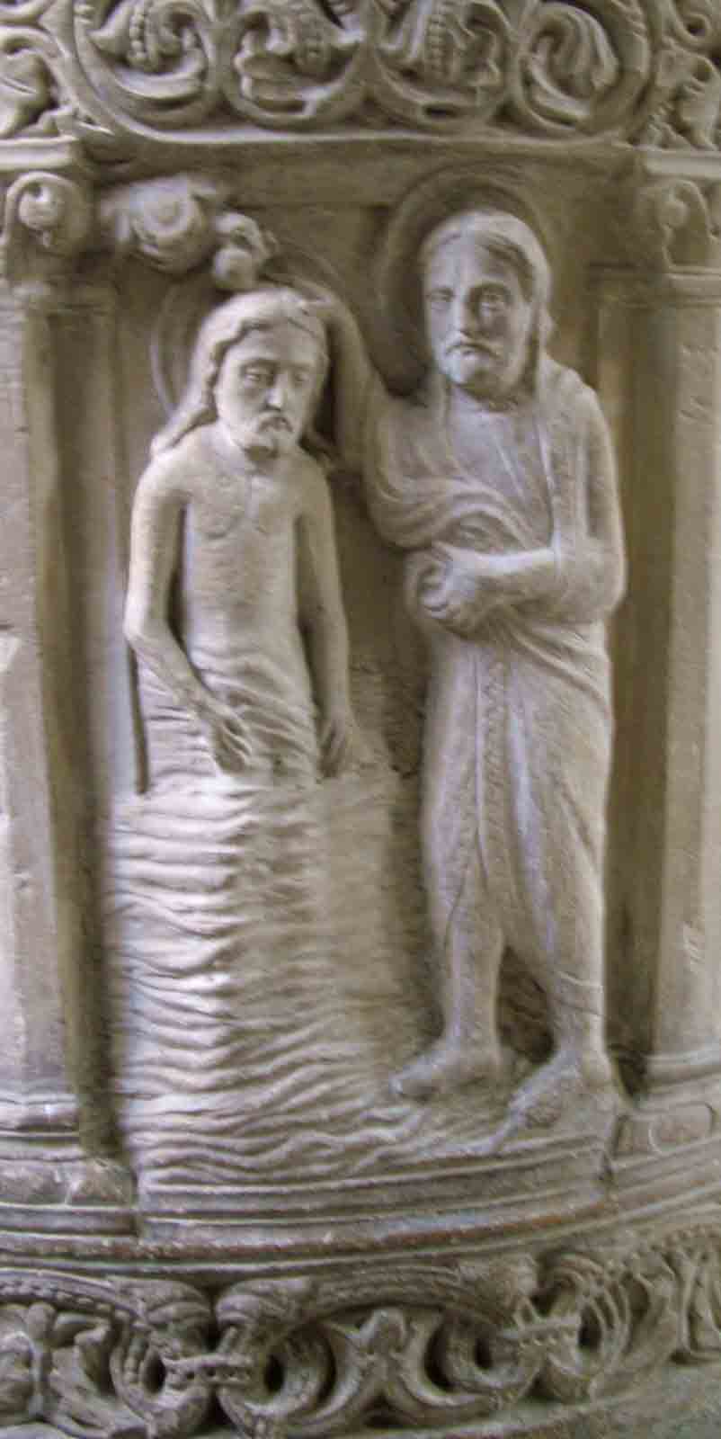 Ausschnitt vom Taufbecken rk. Kirche in Lippborg (Foto: M.Thérèse Haemers-van Roey, Belgien)