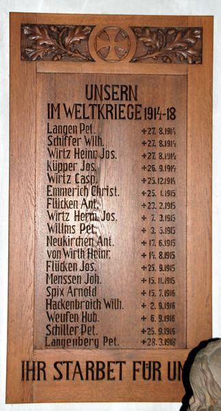 Gedenktafel für die Opfer des I. Weltkrieges in der Kirche St. Cosmas & Damian in Titz | |||