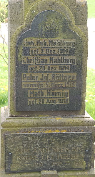 Die Gedenktafel am Kreuz für die Opfer des I.Weltkrieges an der Kapelle in Todenfeld | |||