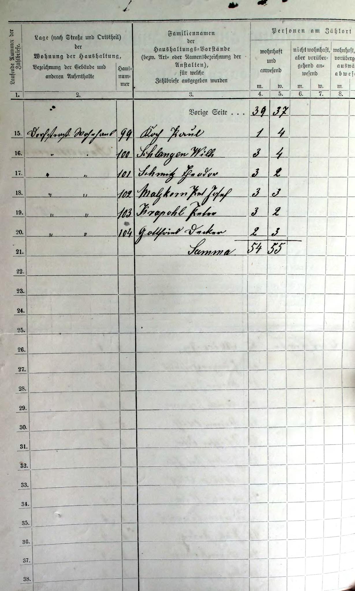 Controllisten der preußischen Volkszählung vom 1.Dezember 1880 für Vanikum