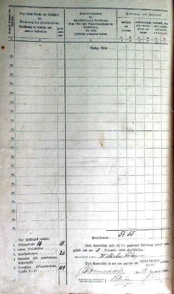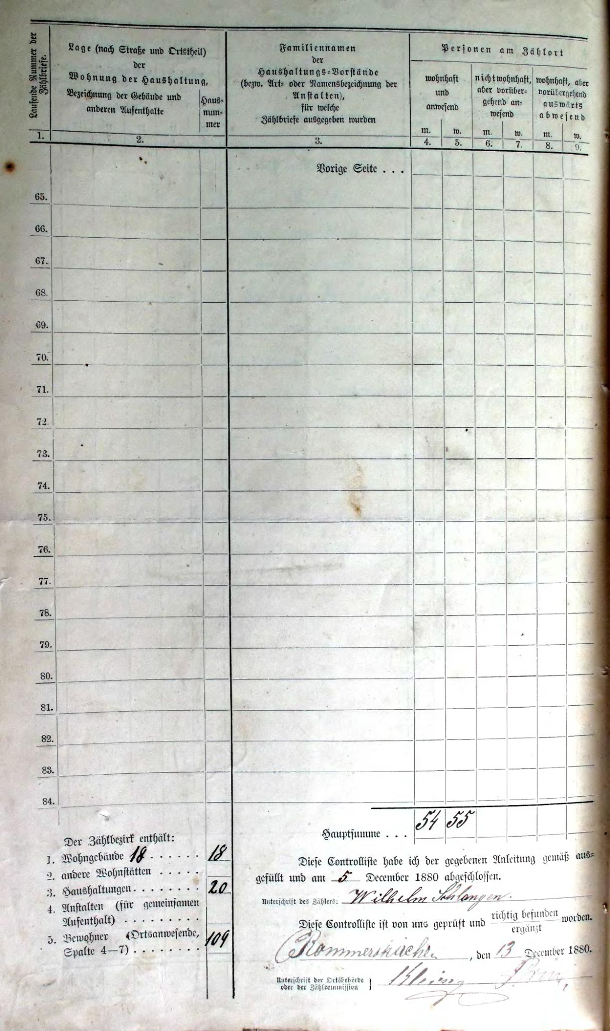 Controllisten der preußischen Volkszählung vom 1.Dezember 1880 für Vanikum