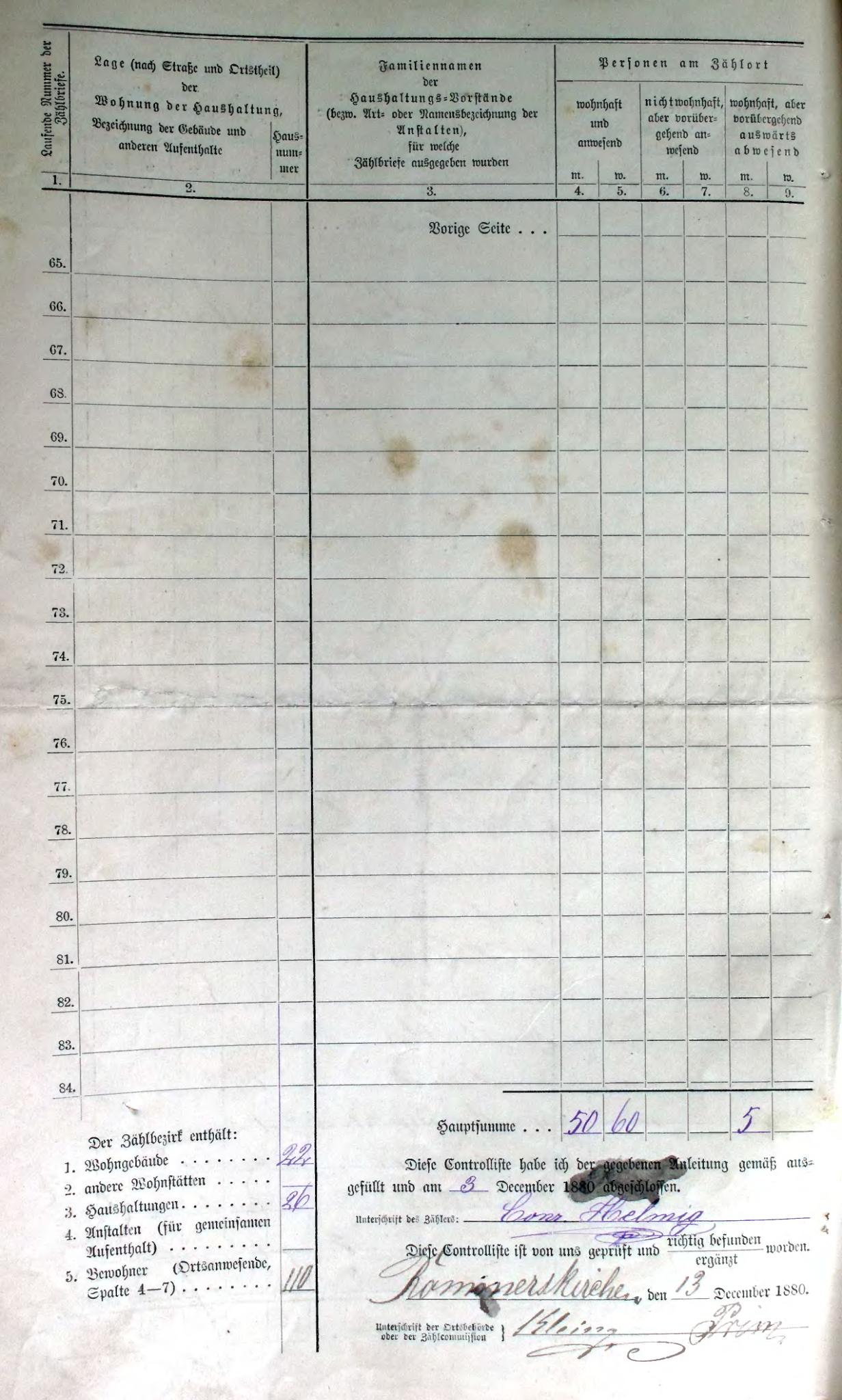 Controllisten der preußischen Volkszählung vom 1.Dezember 1880 für Vanikum