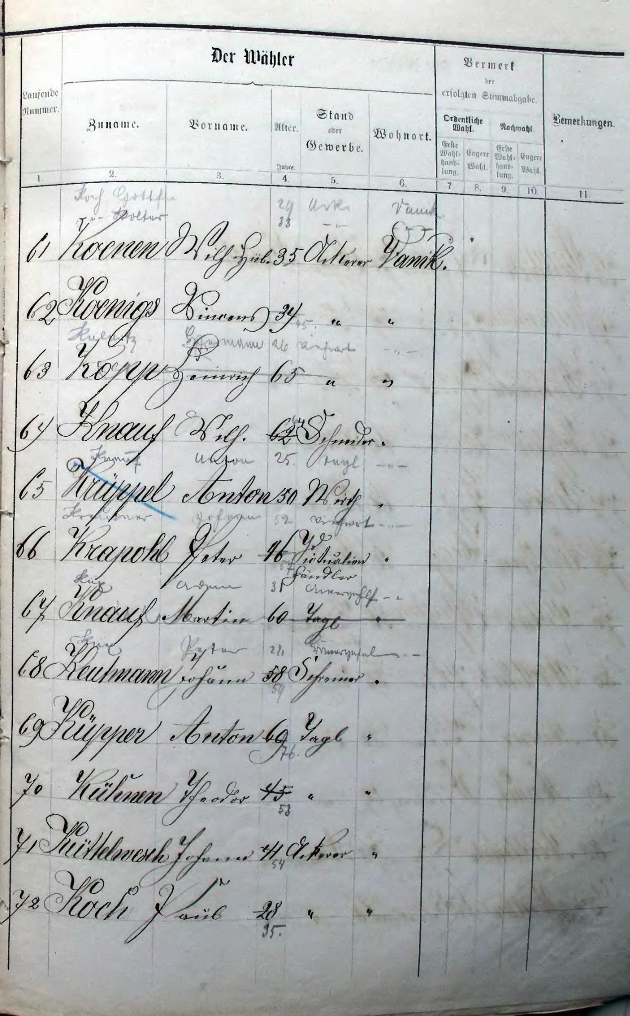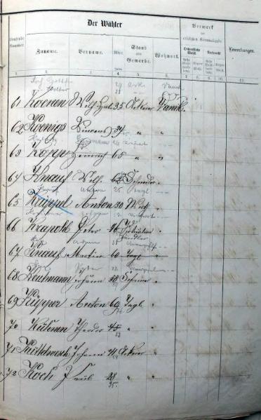 | aktuell | 15:33, 22. Jul. 2010 | 3.066 × 4.830, 13 Seiten (1,31 MB) | KlausErdmann (Diskussion • Beiträge) | {{Information |Beschreibung = Wählerliste der Gemeinde Rommerkirchen, <br />hier: Vanikum |Quelle = Gemeindearchiv Rommerskirchen |Urheber = |Datum = Dezember 1873 |Scans = Klaus Erdmann ''(Scan & Repro 22.07.2010)'' |Genehmigung |