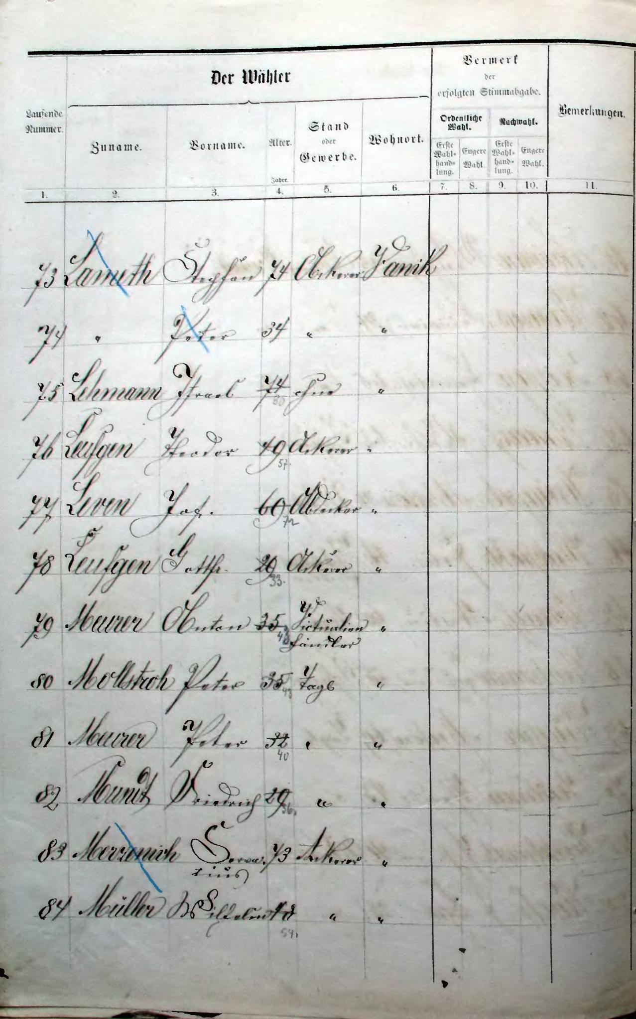 | aktuell | 15:33, 22. Jul. 2010 | 3.066 × 4.830, 13 Seiten (1,31 MB) | KlausErdmann (Diskussion • Beiträge) | {{Information |Beschreibung = Wählerliste der Gemeinde Rommerkirchen, <br />hier: Vanikum |Quelle = Gemeindearchiv Rommerskirchen |Urheber = |Datum = Dezember 1873 |Scans = Klaus Erdmann ''(Scan & Repro 22.07.2010)'' |Genehmigung |
