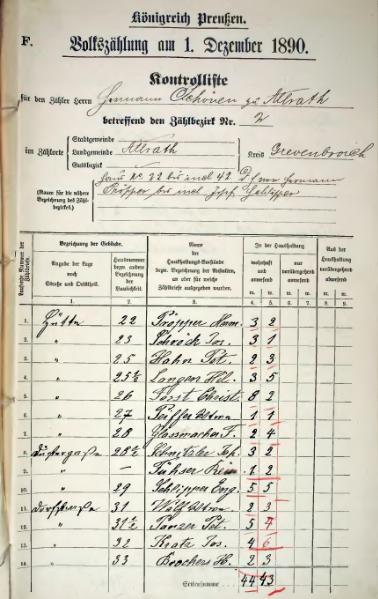 Kontrolliste zur Volkszählung vom 1. Dezember 1890 im Königreich Preußen | |