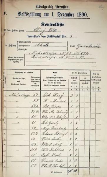 Kontrolliste zur Volkszählung vom 1. Dezember 1890 im Königreich Preußen | |