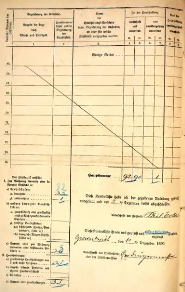 Kontrolliste zur Volkszählung vom 1. Dezember 1890 im Königreich Preußen | |