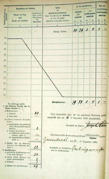 Preußische Volkszählung am 1. Dezember 1890 in der Stadt Grevenbroich | |