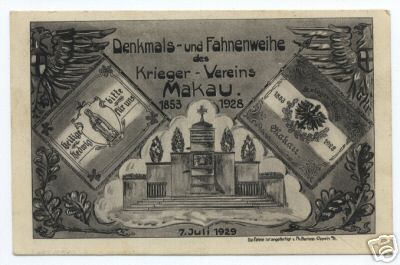 Erinnerungskarte zur Denkmals und Fahnenweihe des Krieger-Vereins Makau am 7. Juli 1929 |