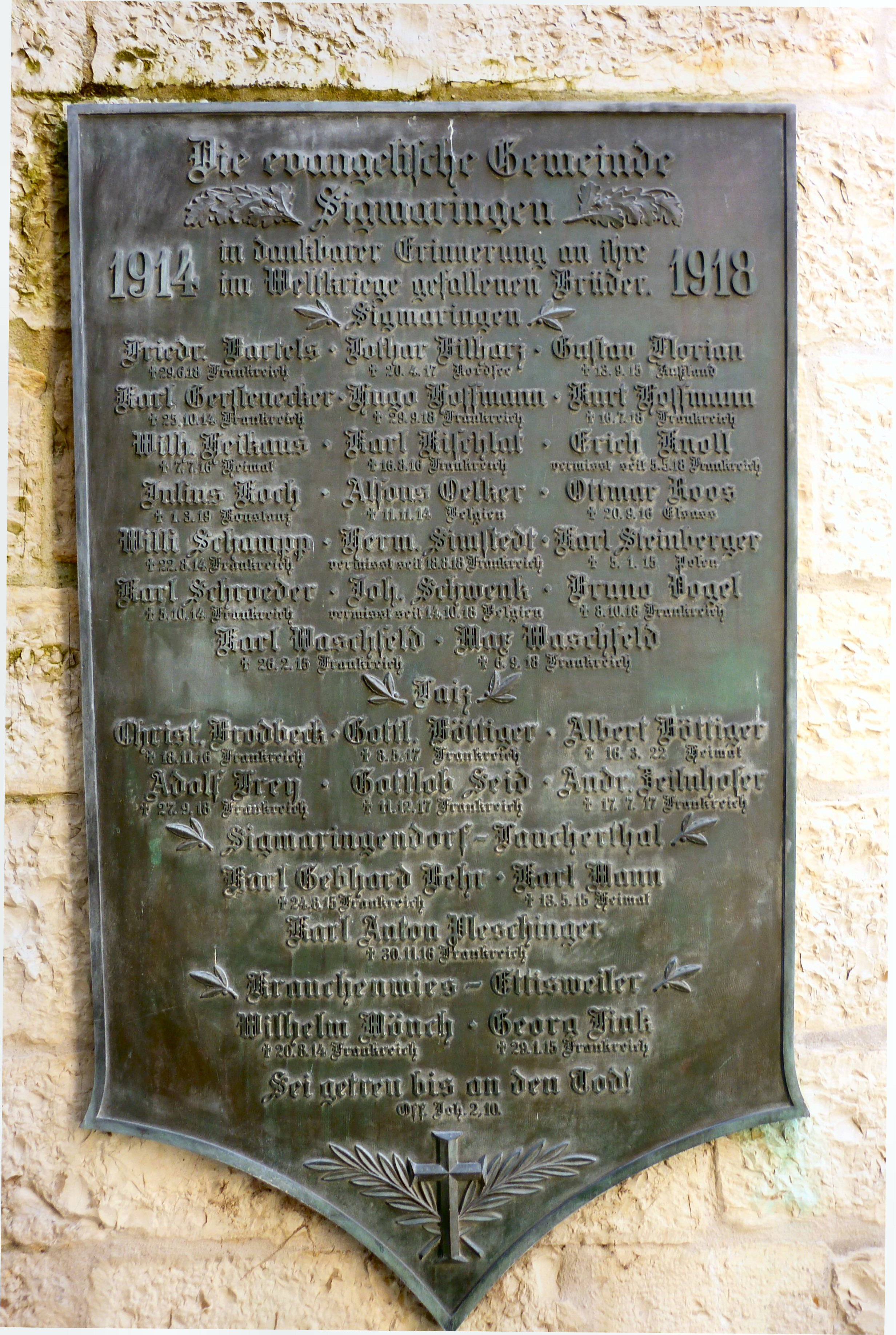 Sigmaringen: Kriegergedenktafel 1914-18 an der ev. Stadtkirche an der Karlstraße |