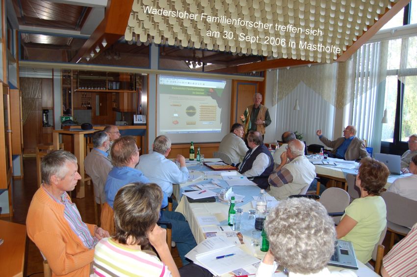 - Beschreibung: Seminar der Wadersloher Familienforscher am 30.09.2006 in Mastholte (im Trainigsraum unseres Sponsors HGM)