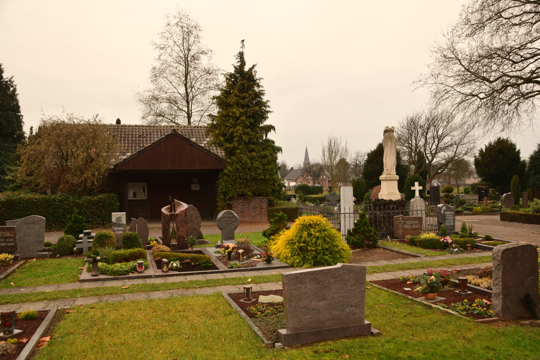 Die Trauerhalle auf dem Friedhof in Wanlo