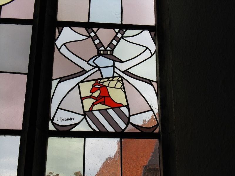 Wappen der Familie von Brandis (stilisiert): Fensterglaswappen in der 1. Etage des Rathauses Hildesheim | ||||