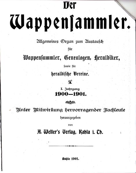 | aktuell | 08:57, 16. Aug. 2019 | 1.952 × 2.484 (312 KB) | Am1506 (Diskussion • Beiträge) | {{Information |Beschreibung = Der Wappensammler |Quelle = Scan Arndt Richter |Urheber = Markus (Schröter) |Datum = erstellt am 15.08.2019 |Scans = |Genehmigung = {{Copyright GenWiki|AM1506}} |Andere_Versionen = |Anmerkungen = Deckblatt |