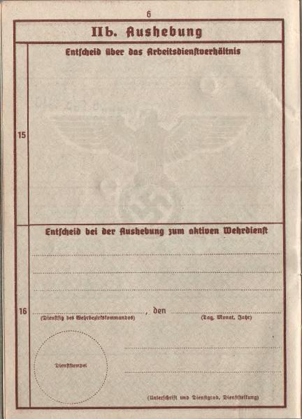 | aktuell | 17:39, 13. Mär. 2011 | 822 × 1.150, 34 Seiten (3,79 MB) | KlausErdmann (Diskussion • Beiträge) | {{Information |Beschreibung = ;Wehrpaß aus dem II. Weltkrieg:von Theodor Erdmann |Quelle = Familienarchiv K.Erdmann |Urheber = |Datum = 8. Februar 1940 |Scans = Klaus Erdmann ''(Scan & Repro: 13. März 2011)'' |Genehmigung = |And |