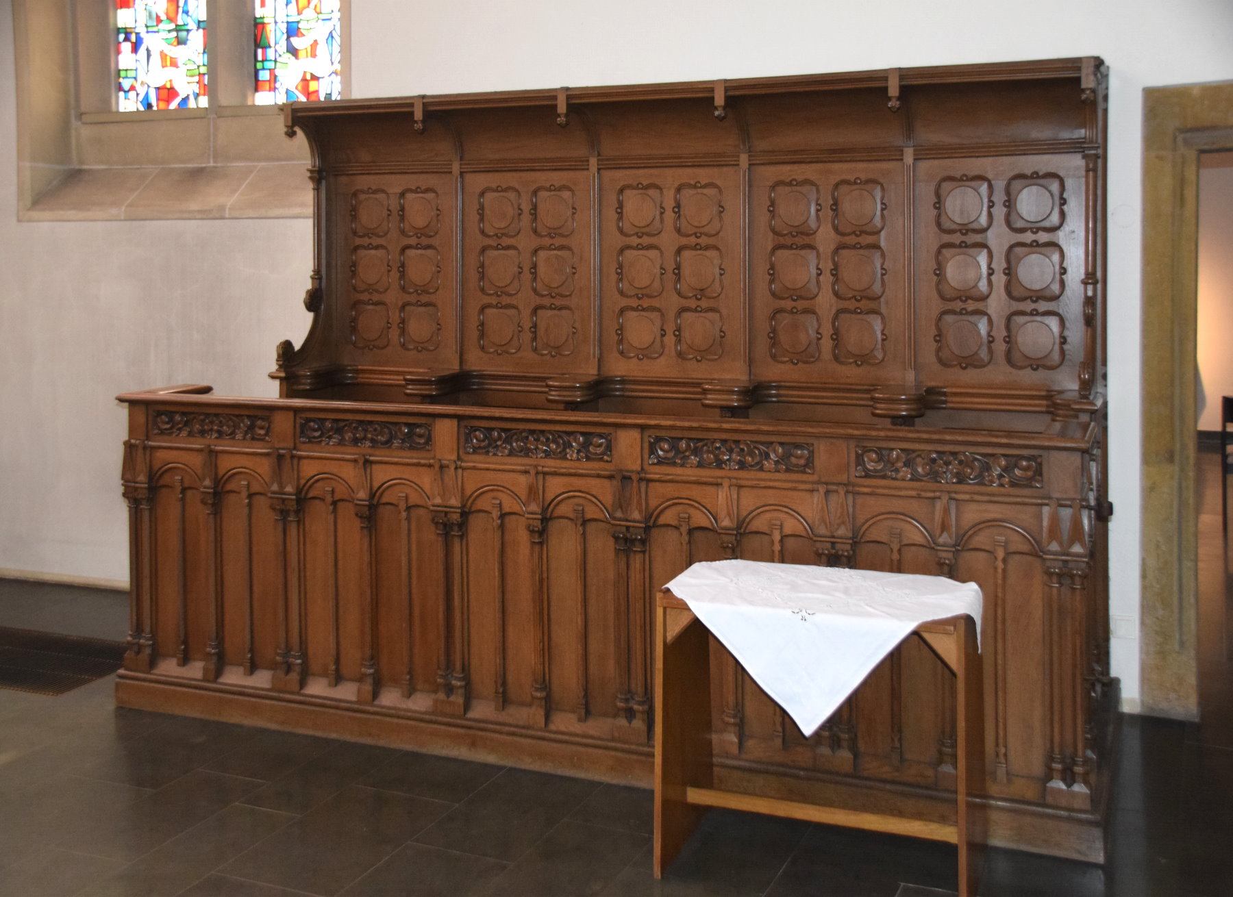 Das rechte Chorgestühl von 1878 in der St. Laurentiuskirche, Westkirchen | ||||