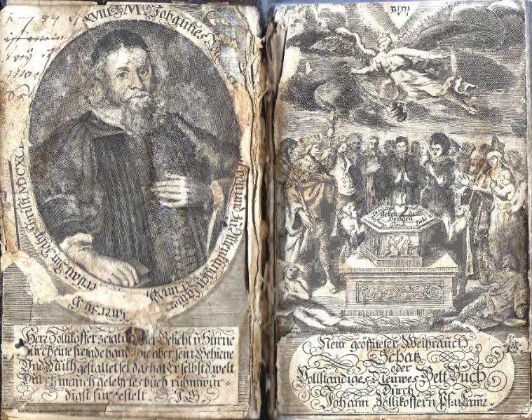 Neu eröffneter himmlischer Weyhrauch-Schatz oder vollständiges Gebätt-Buch. Auf allerhand Zeiten, Anliegen und Personen gerichtet; dabey ein genugsamer Unterricht vom Gebrauch des Heil. Abendmahls, Besuchungen der Krancken, und Zubereitung der zum Tode verurtheilten Personen, etc. samt behörigen Gebätten: Auß den aller-berühmtesten Englisch- und Französischen Theologis übersetzt und zusammen gezogen durch Johannem Zollikoffern, weiland Cammerern und Pfarrern der Christlichen Gemeinde zu Herisau. | |||