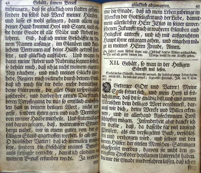 Neu eröffneter himmlischer Weyhrauch-Schatz oder vollständiges Gebätt-Buch. Auf allerhand Zeiten, Anliegen und Personen gerichtet; dabey ein genugsamer Unterricht vom Gebrauch des Heil. Abendmahls, Besuchungen der Krancken, und Zubereitung der zum Tode verurtheilten Personen, etc. samt behörigen Gebätten: Auß den aller-berühmtesten Englisch- und Französischen Theologis übersetzt und zusammen gezogen durch Johannem Zollikoffern, weiland Cammerern und Pfarrern der Christlichen Gemeinde zu Herisau. | |||