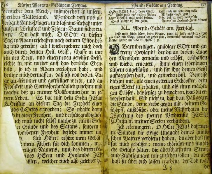 Neu eröffneter himmlischer Weyhrauch-Schatz oder vollständiges Gebätt-Buch. Auf allerhand Zeiten, Anliegen und Personen gerichtet; dabey ein genugsamer Unterricht vom Gebrauch des Heil. Abendmahls, Besuchungen der Krancken, und Zubereitung der zum Tode verurtheilten Personen, etc. samt behörigen Gebätten: Auß den aller-berühmtesten Englisch- und Französischen Theologis übersetzt und zusammen gezogen durch Johannem Zollikoffern, weiland Cammerern und Pfarrern der Christlichen Gemeinde zu Herisau. | |||