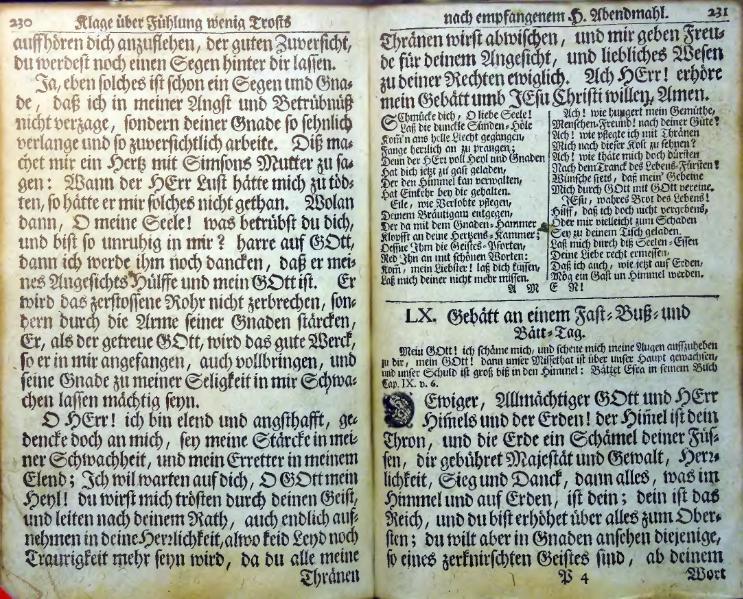 Neu eröffneter himmlischer Weyhrauch-Schatz oder vollständiges Gebätt-Buch. Auf allerhand Zeiten, Anliegen und Personen gerichtet; dabey ein genugsamer Unterricht vom Gebrauch des Heil. Abendmahls, Besuchungen der Krancken, und Zubereitung der zum Tode verurtheilten Personen, etc. samt behörigen Gebätten: Auß den aller-berühmtesten Englisch- und Französischen Theologis übersetzt und zusammen gezogen durch Johannem Zollikoffern, weiland Cammerern und Pfarrern der Christlichen Gemeinde zu Herisau. | |||