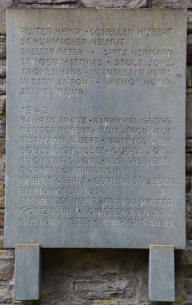 | aktuell | 08:31, 15. Jun. 2020 | 2.000 × 3.179 (1,31 MB) | KlausErdmann (Diskussion • Beiträge) | {{Information |Beschreibung = Gedenkstein auf dem Ehrenfriedhof in Willich</br> '''für die Opfer des II. Weltkrieges''' |Quelle = eigenes Foto |Urheber = Klaus Erdmann |Datum = Juni 2020 |Scans = |Genehmigu |