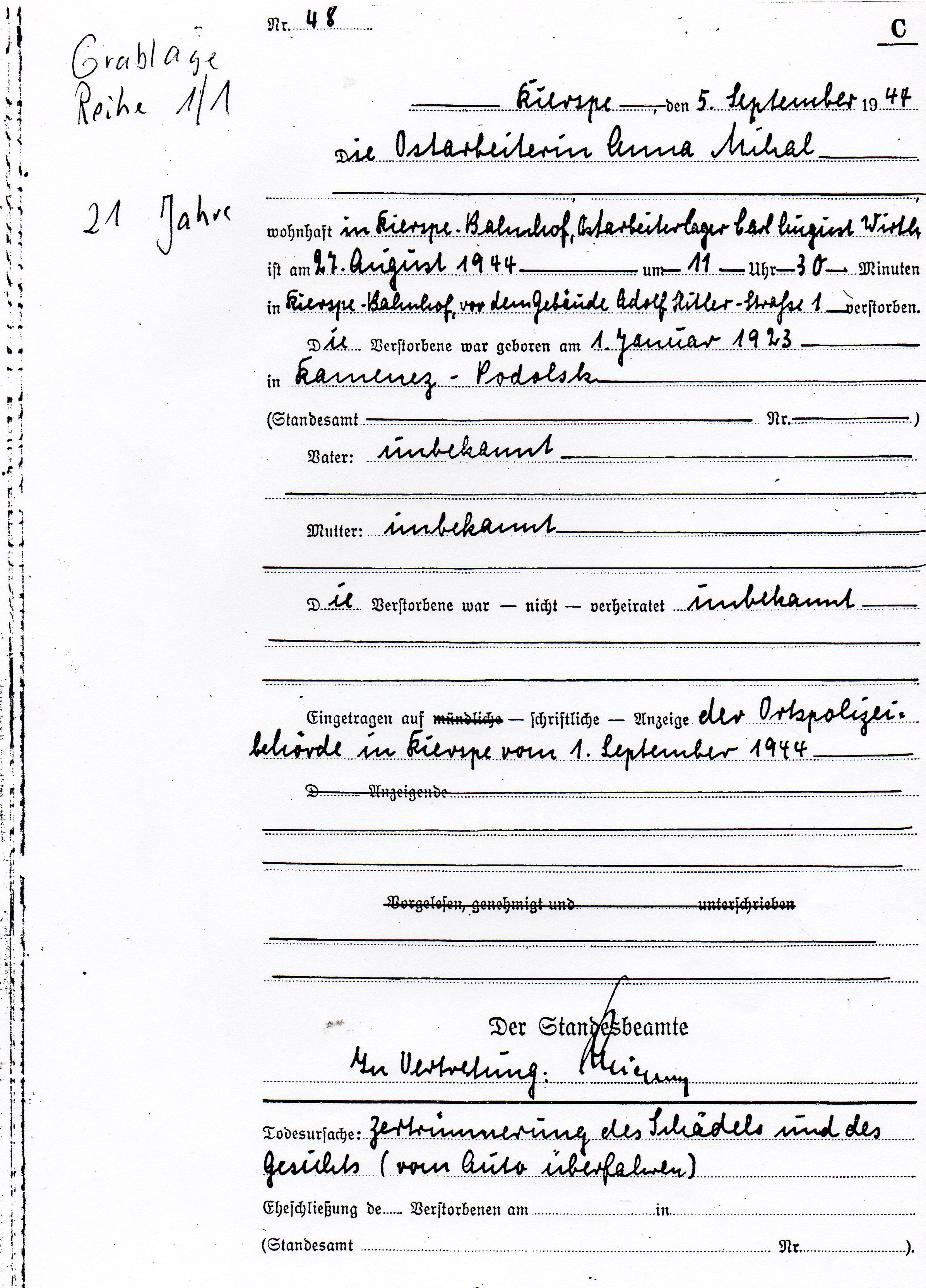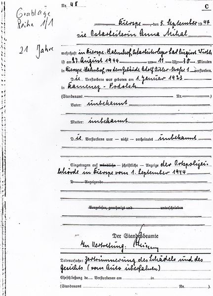 Sterbeurkunde Anns Mihal |