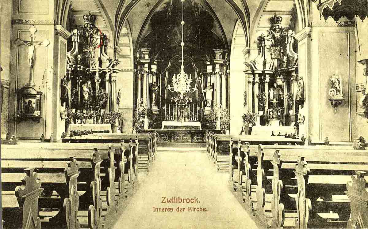 Innenansicht der Kirche um 1900 zu Zwillbrock bei Vreden im Kreis Ahaus, seit 1975 Kreis Borken