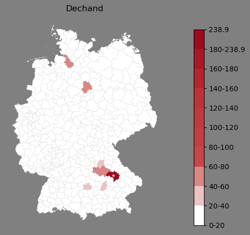 Absolute Verteilung des Namens Dechand (1890)Direkt zur Karte Absolute Verteilung des Namens "Dechand" um 1890 im damaligen Deutschen Reich Sie können die Karte innerhalb des Fensters zoomen und verschieben. |