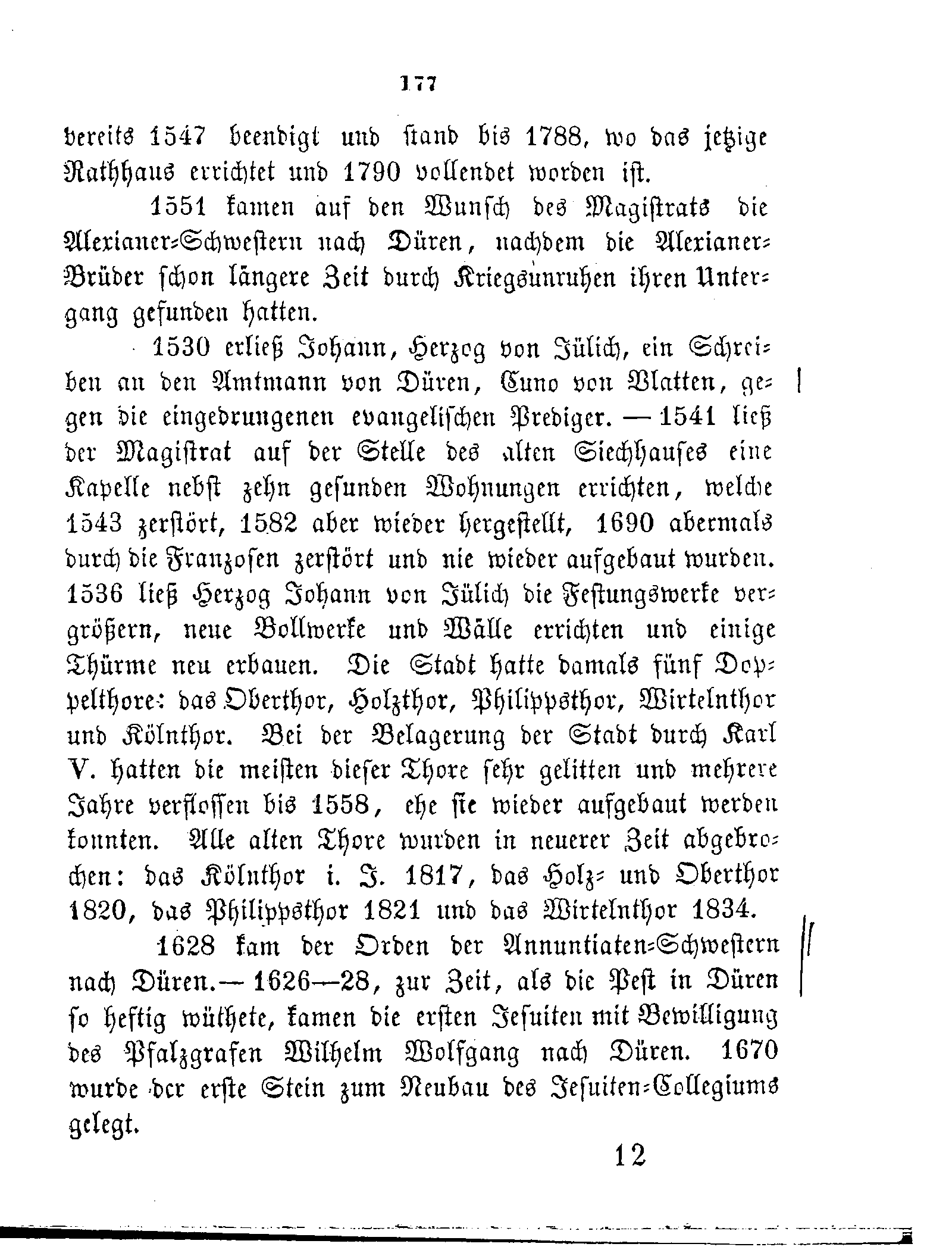 1628 kam der Orden der Annuntiaten-Schwestern nach Düren. — 1626-28, zur Zeit, als die Pest in Düren so heftig wüthete, kamen die ersten Jesuiten mit Bewilligung des Pfalzgrafen Wilhelm Wolfgang nach Düren. 1670 wurde der erste Stein zum Neubau des Jesuiten-Collegiums gelegt.