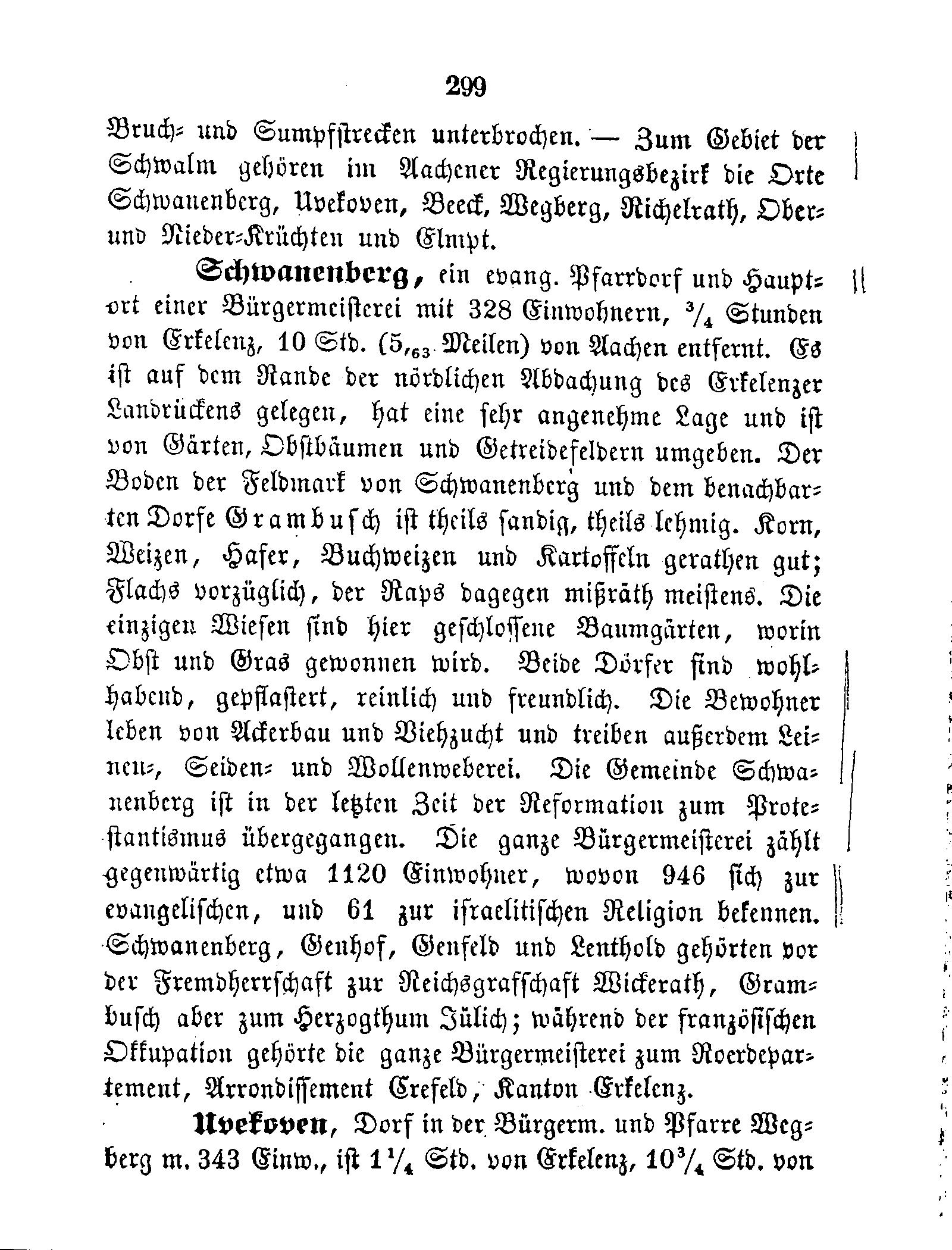 Uvekoven, Dorf in der Bürgerm. und Pfarre Wegberg m. 343 Einw., ist 1¼ Std. von Erkelenz, 10¾ Std. von
