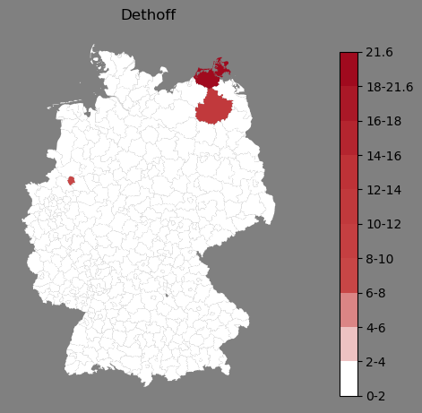 - Dethoff in der Namensverbreitungskarte (NVK) für 1890, 1996 oder 1890+1996 kombiniert